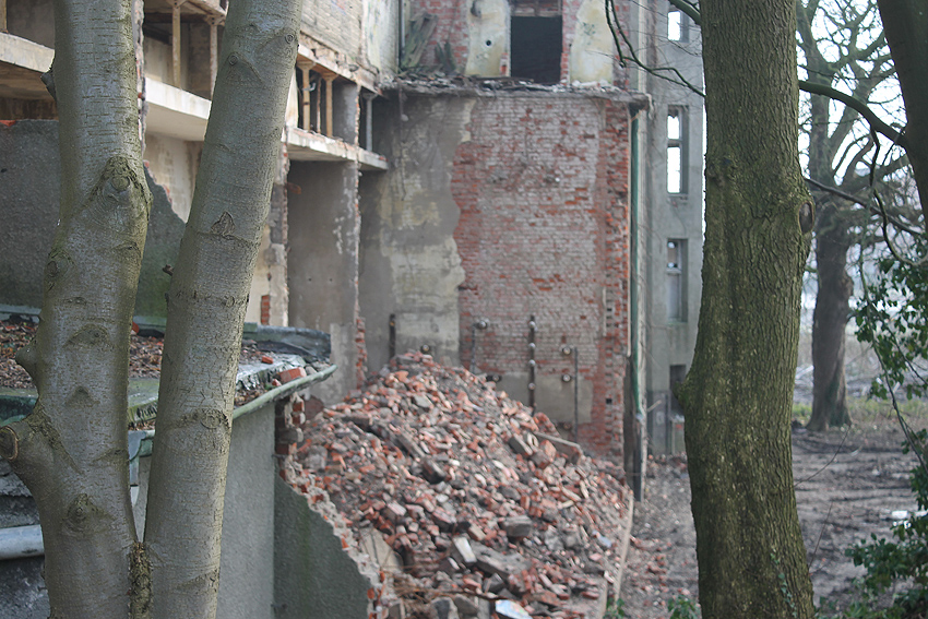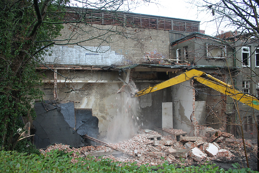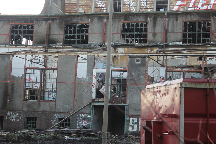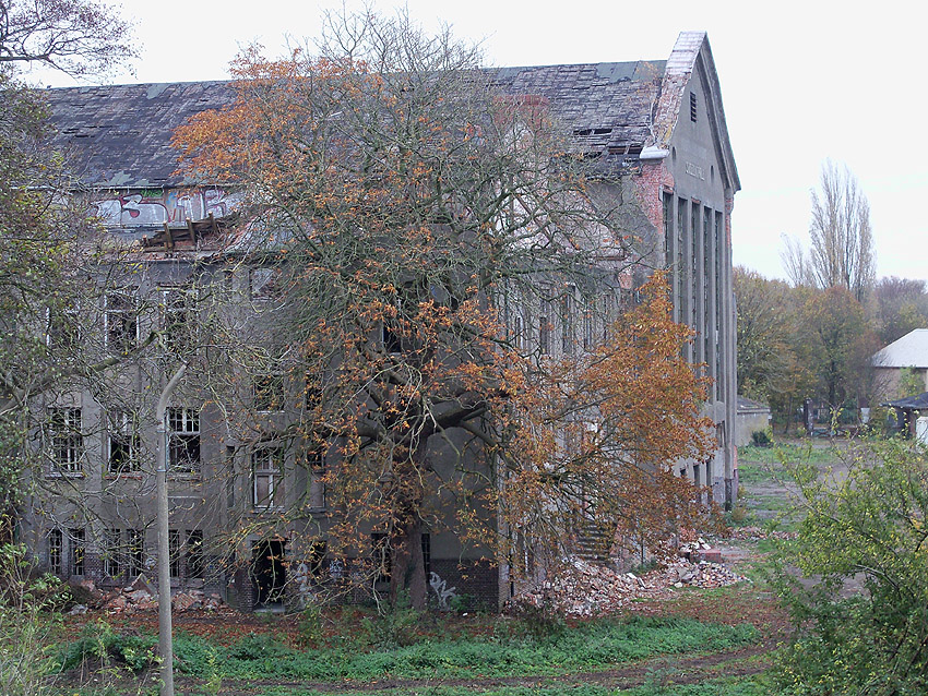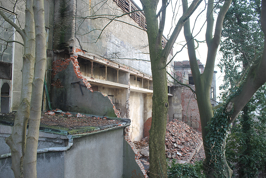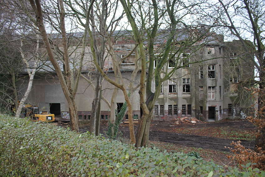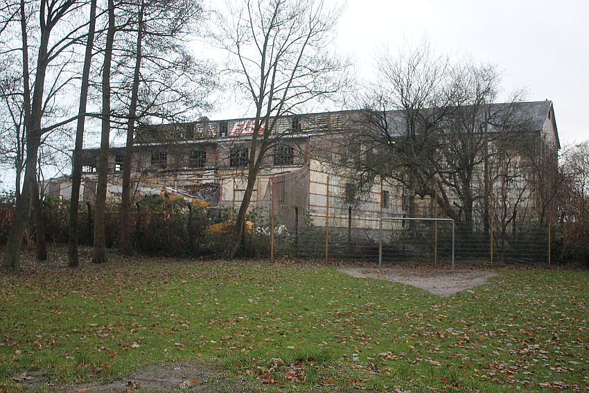 11.12.14: Nun wird im Südbereich direkt neben dem Verwaltungstrakt entkernt und scheinbar auch hier ein Abbruch vorbereitet.