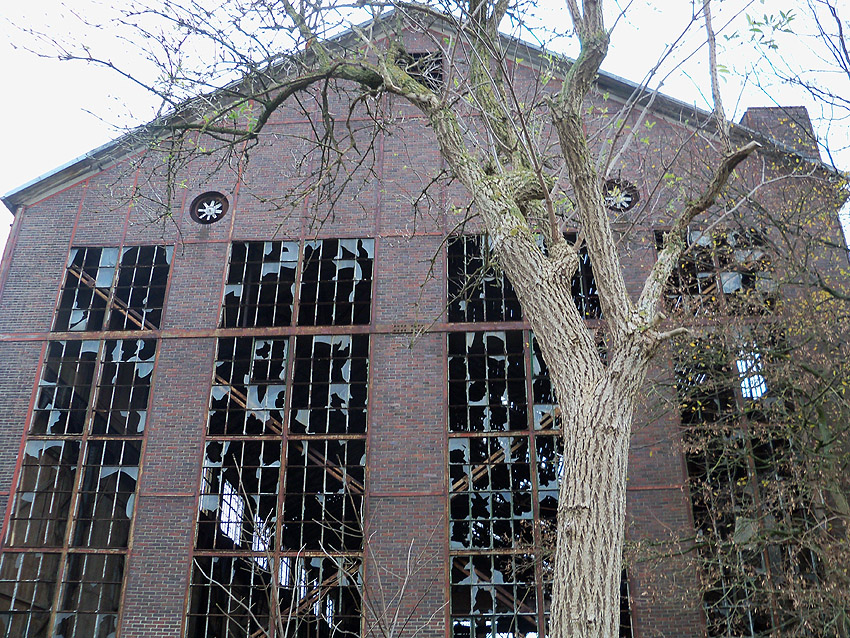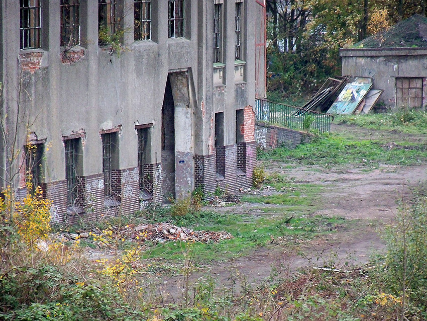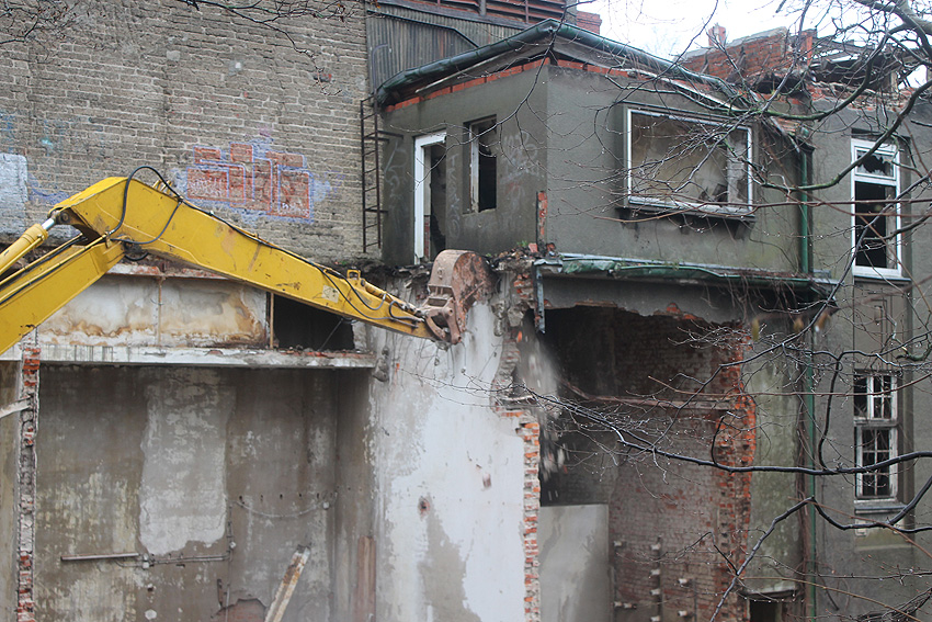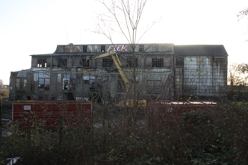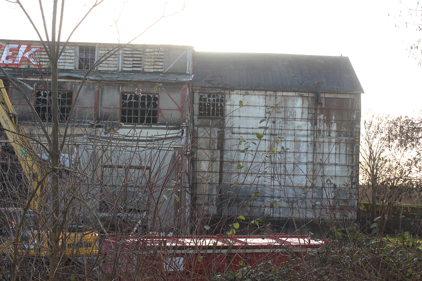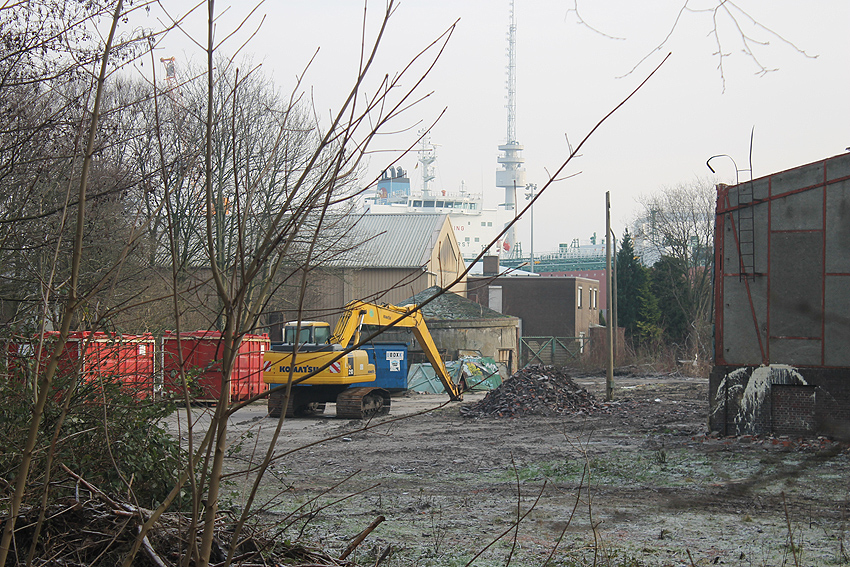 11.12.14: Nun wird im Südbereich direkt neben dem Verwaltungstrakt entkernt und scheinbar auch hier ein Abbruch vorbereitet.