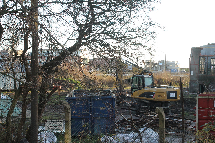 06.11.14: Vor zwei Tagen rückten wieder Bagger und weiteres Räumgerät an der Südzentrale an. Zusätzliche Container wurden aufgestellt. Gestern wurden dann die asbesthaltigen Wandplatten am nördlichen Nebenbau der Südzentrale Stück für Stück abgetragen. Nicht ohne Folge. Dreimal rückte die Polizei laut Aussagen mehrerer Bürger an, um die ordnungsgemäße Handhabung der Schadstoffrückbaumaßnahme zu kontrollieren. Das ist heute in der Tagespresse zu lesen: