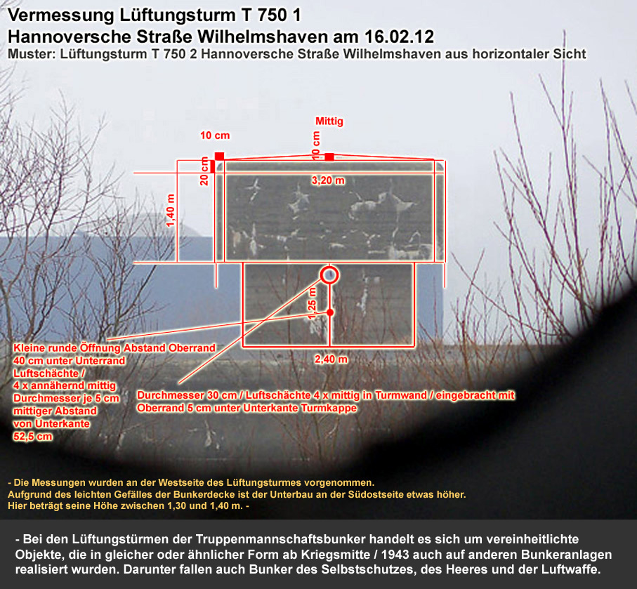 Interessant ist, dass der Aufbau des äußerst massiven Selbstschutz-Standard-Hochbunkers der II. Welle Störtebekerstraße / Sedan in Wilhelmshaven durchaus diverse Ähnlichkeiten zur Gestaltung der Kriegsmarine-Truppenmannschaftsbunker aufweist.