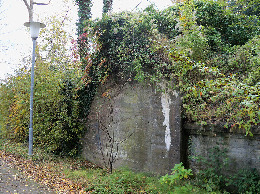 Stand August 2018: Die beiden betonierten Deckungsgräben der damaligen Grodenschule werden höchstwahrscheinlich doch erhalten bleiben. In einem Bebauungsplan sind sie - trotz Neubebauung dazwischen - weiterhin eingezeichnet. Aufgrund der immensen Abbruchkosten wird ein Abriss wohl glücklicherweise vermieden werden.