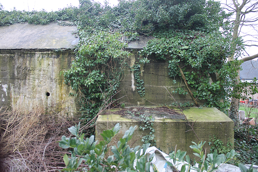 Handelt es sich um das letzte Element eines ursprünglich "mehrteiligen" Deckungsgrabens wie z.B. Potenburger Weg? Fügte / fügten sich am Westende ursprünglich noch weitere Elemente an? Oder waren zumindest weitere Elemente geplant (nicht ausgeführt aufgrund "wichtigerer" Bunkerbaustellen...) und der Durchgang wurde dann nachträglich versiegelt (daraufhin Schaffung des splittergeschützten Notausstieges an der Nordseite bei der Westecke? Unwahrscheinlich. Denkbar wäre es aber dennoch.