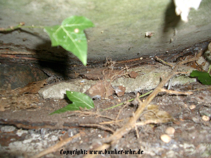 Am Westrand des ehemaligen Fort Schaar (ein Großteil des Geländes ist heute mit Wohnhäusern bebaut), wo am Anfang des Zweiten Weltkrieges auch die Luftverteidigung Wilhelmshavens koordiniert wurde, befindet sich am dortigen Graben außerhalb des ehemaligen Fortbereiches diese historische Stahlklappe. Sie ist versiegelt. Im Inneren kann man durch eine kleine Öffnung hindurch leider nur schlecht etwas erkennen. Kurios ist die unmittelbare Nähe zum Wassergraben. Eigentlich müsste jeder tiefere historische Innenraum unter der Klappe längst unter Wasser stehen. Daneben befinden sich diverse Betonquader, einige mit Metallaufnahmen versehen. Was war das? Auf 1945er Luftbildern ist genau an der Stelle lediglich ein undefinierbarer kleiner Punkt zu erkennen. Hatten diese Strukturen etwas mit Luftschutz zu tun?