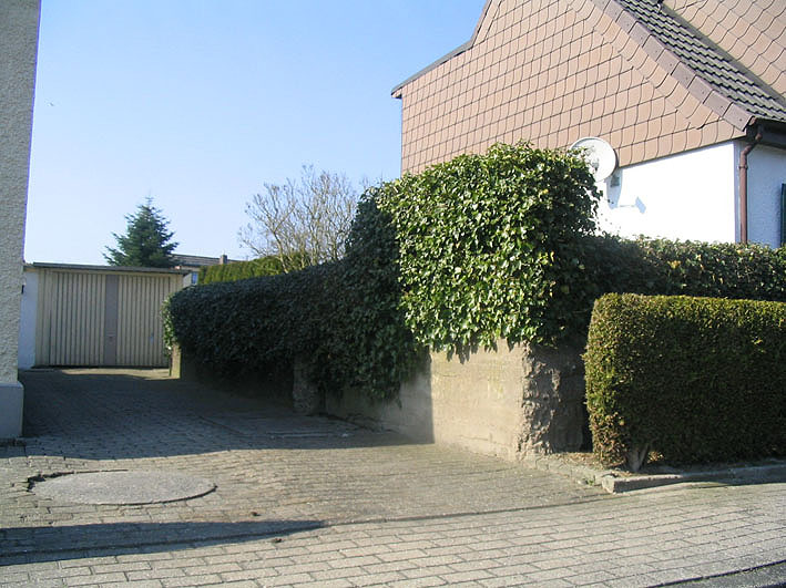 Ursprünglich eventuell mit Erdreich um- und überböscht (jedoch bezüglich der "Platzverhältnisse" unwahrscheinlich, wegen fast direkt anliegender Wohnbebauung).