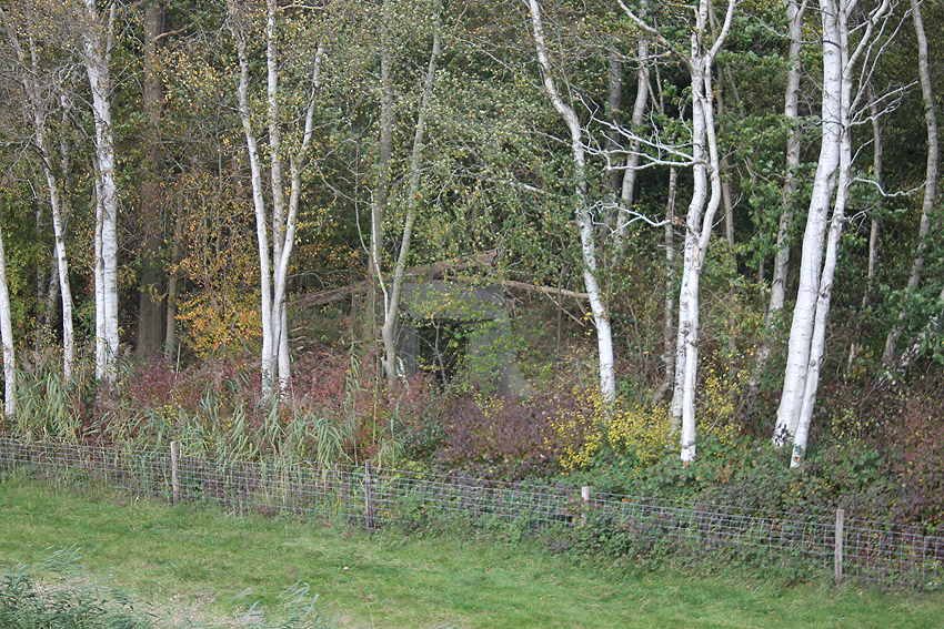 Nach Hinweisen soll sich zwischen diesem Bunker (4) und der westlich folgenden Anlage / Bunker 8 ein weiteres Objekt befinden. Dieses soll mit einem "runden / ovalen" Eingang versehen sein und bereits aus Vorkriegszeiten stammen. Auf dem 1945er Luftbild dieses Bereiches ist allerdings kein derartiges Massivobjekt erkennbar. Lediglich die hier auf den Seiten vorgestellten Objekte 1 bis 12.