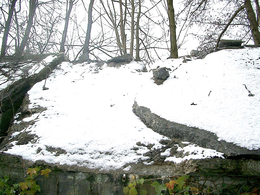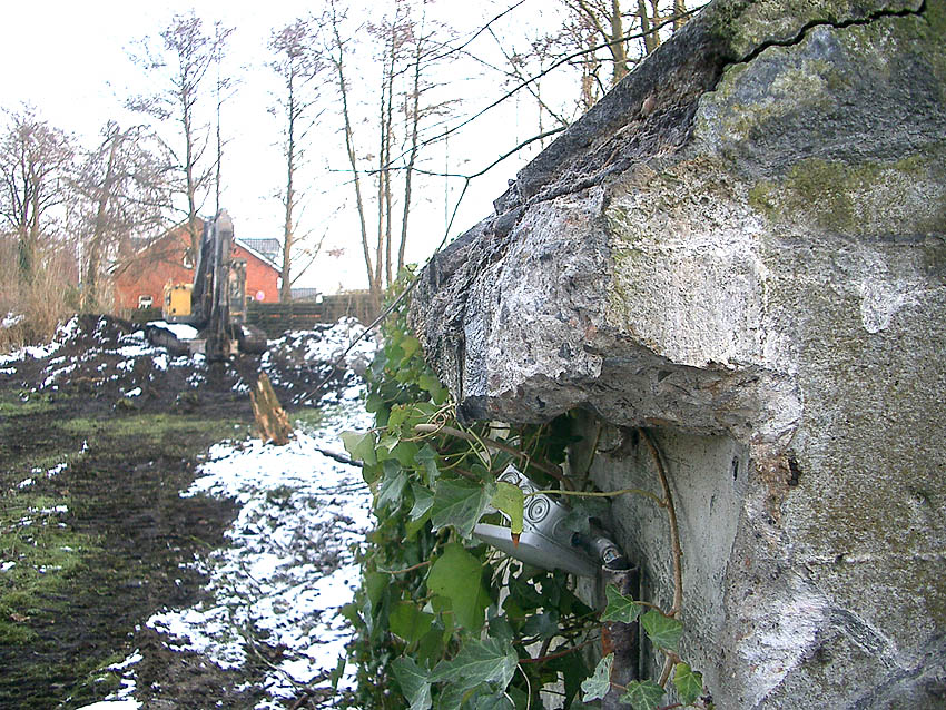 Im Jahre 2006 wurde der Deckungsgraben abgerissen. Ein Autohändler parkte hier nachfolgend seine PKW's. Mittlerweile liegt das Gelände brach. Unweigerlich kommt die Frage auf: Abriss - Wofür?