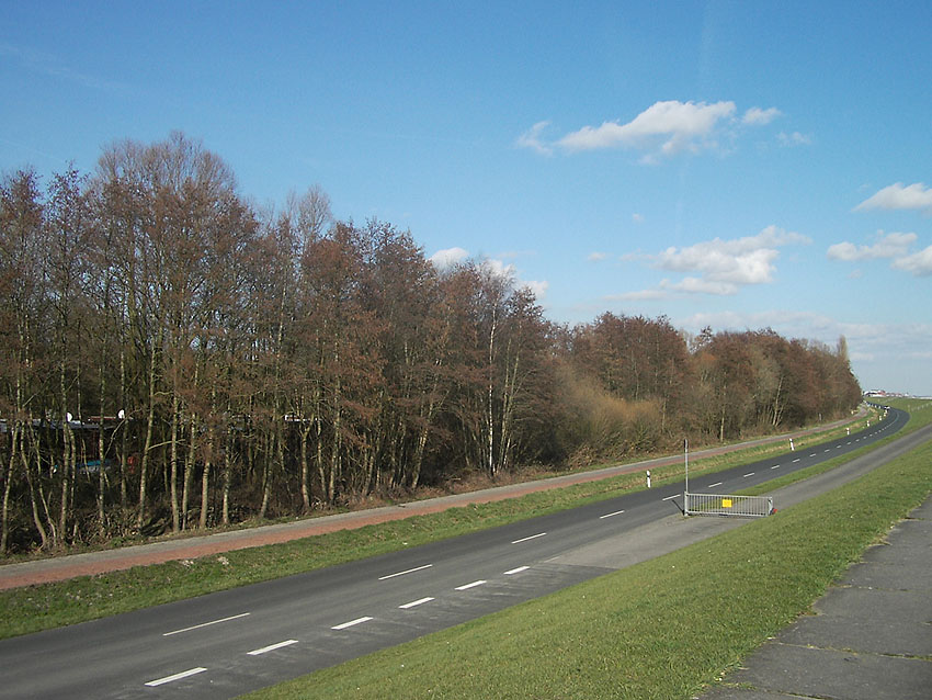 Der Banter Seedeich, links irgendwo im Unterholz liegt die Zelle...
