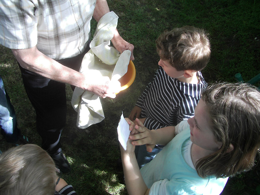 Hinein in den Morast. Herr Klose (links) geht direkt auf die Zelle zu, auch Herr Raddatz Senior (rechts) ist mit dabei...