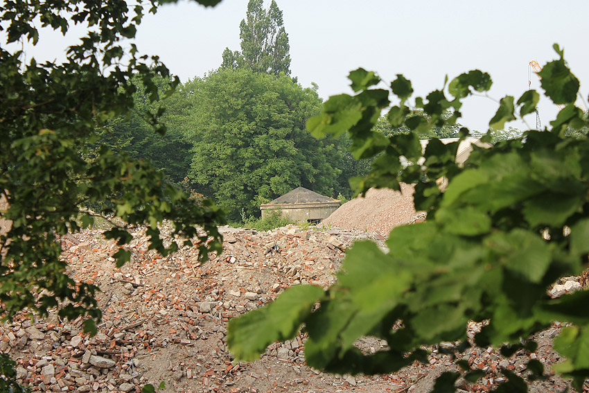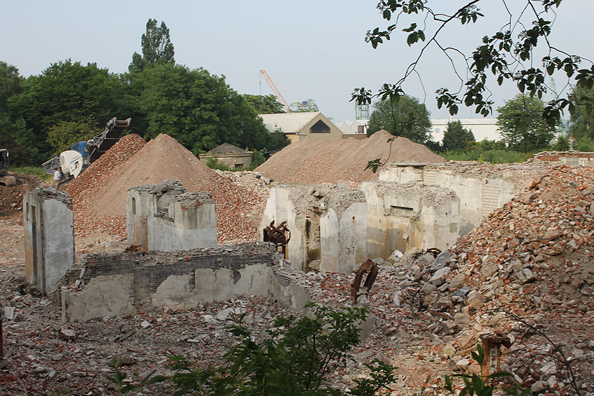 16.08.15: Der Abriss der Südzentrale ist bis auf verbliebene Teile des Kesselhauses abgeschlossen. Der kleine Rundbunker ist glücklicherweise weiterhin unversehrt.