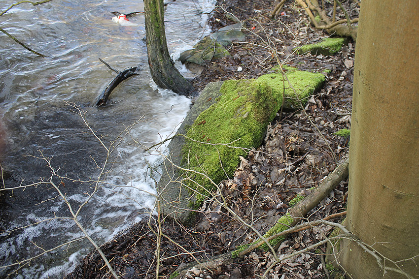 Nachtrag Herbst 2015: Eventuell ein Notausgang des Bunkers nahe südwestlich davon? Und weitere Reste am Ufer...