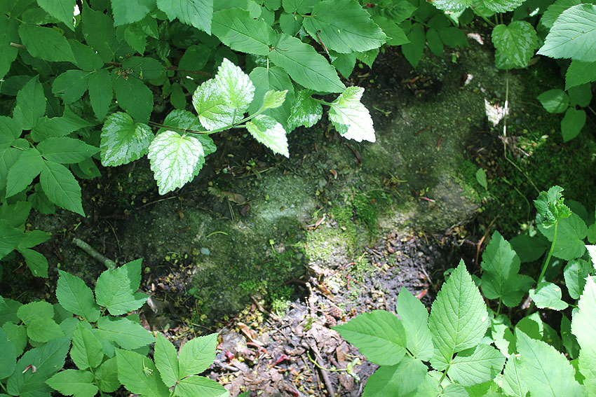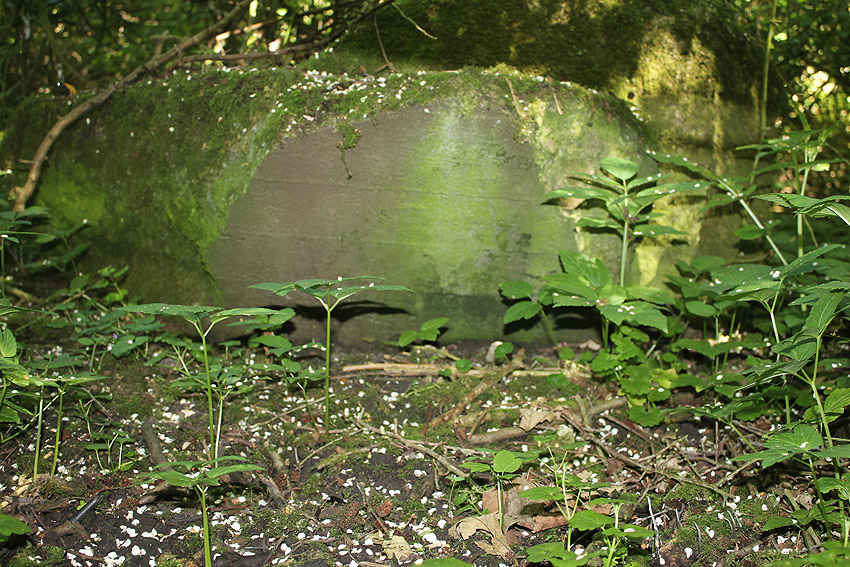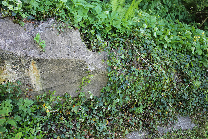 Am 4. Juni 2015 besuchten wir nochmals den überschütteten Bereich vom Geschützbunker Südwest. Was wir fanden, war nicht "Nichts", allerdings nur sehr wenig, darunter jedoch ein Treppenrest (auf den Geschützbunker?):