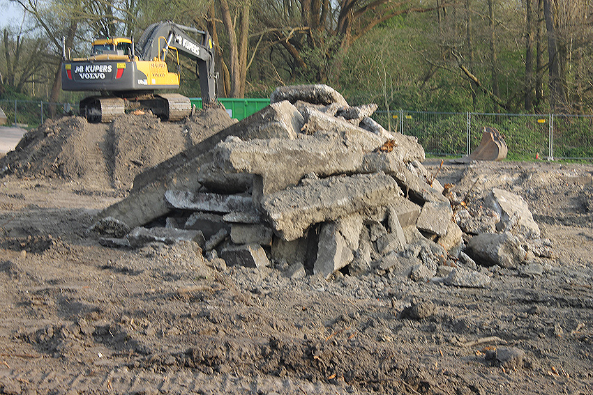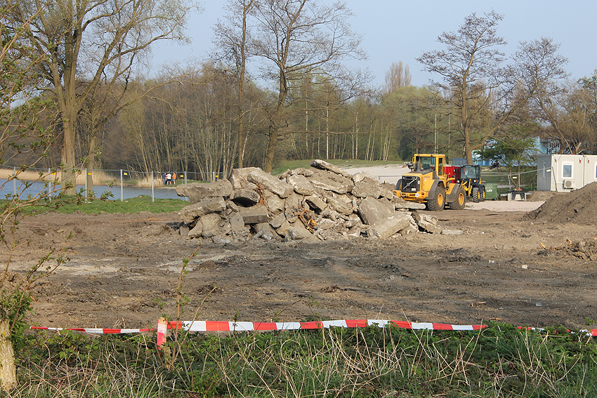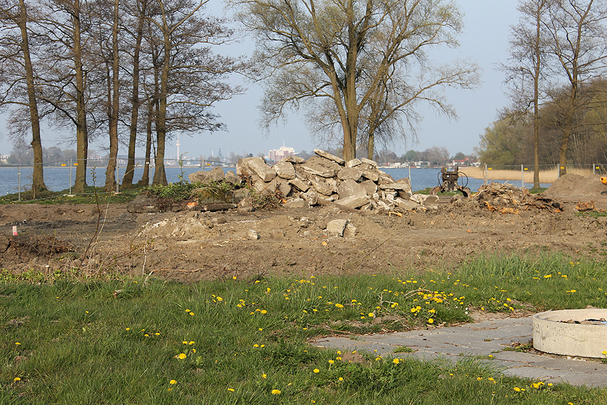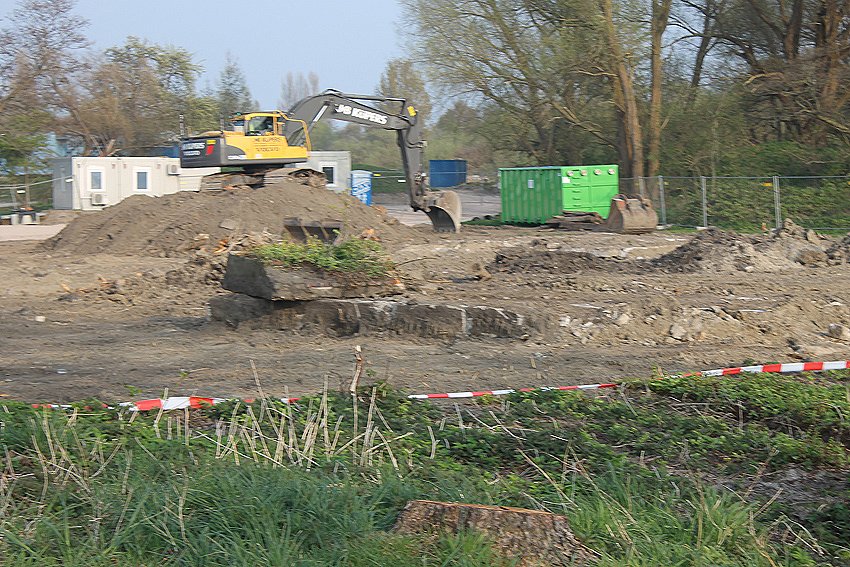 Sanierungsmaßnahmen Klein Wangerooge am 24.04.15: Der alte Tank Süd-Mitte tritt nun ans Tageslicht. Die Rückbauaktivität hat bereits vor einigen Tagen eingesetzt. Im Bereich Klein Wangerooge West, dort wo früher der Anleger der Fähre war, wurden massive Betonfundamente ausgehoben. Eventuell Reste eines Gebäudes zugehörig zur damaligen nahen Flakstellung Tirpitzhafen?