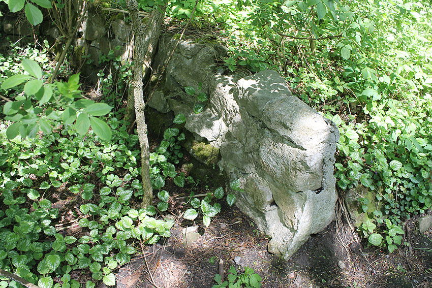 Oben / Unten: Zwei Steinquader links und rechts des Weges unweit des Südostbunkers... War hier ein Schlagbaum angebracht?