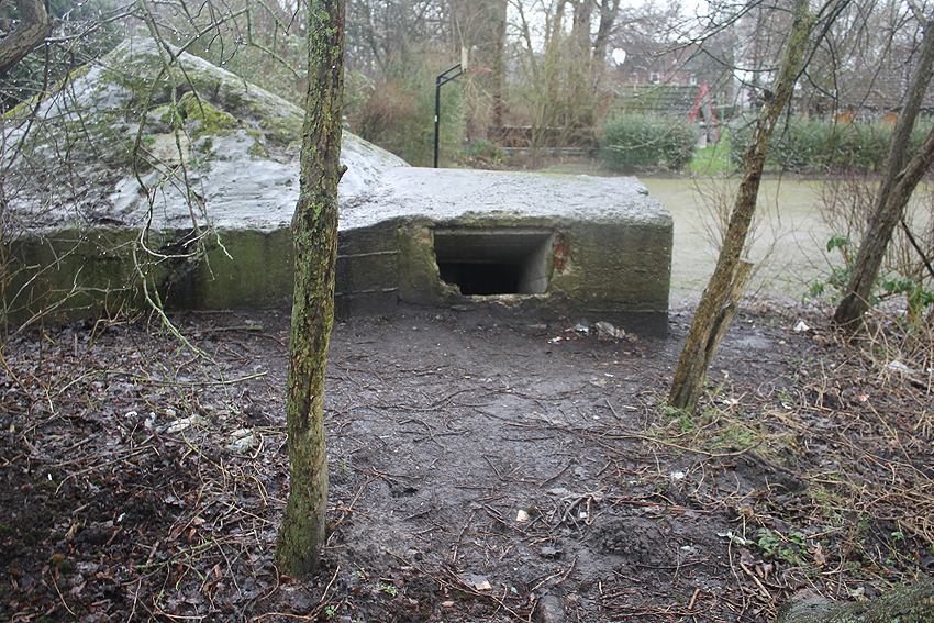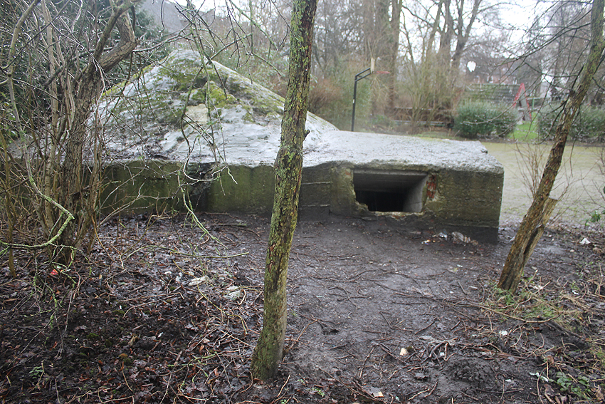 Dezember 2018: Mittlerweile wurde eine Schicht Erdreich vor die Eingangsstelle geschüttet. Eventuell war der Bunker in der Zwischenzeit nochmals aufgebrochen worden.