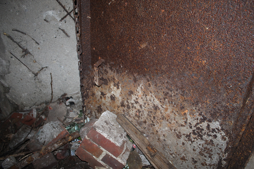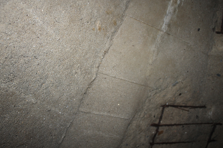 Der Beton der Kuppel wurde mit einem Spaten festgeklopft. Der Bunker ist in Eigenbau entstanden. Die Betongüte und die Schalung sind als eher dürftig zu bezeichnen. Es kam bei diesem Bauwerk nur noch auf die schnelle Schaffung eines Schutzraumes an.