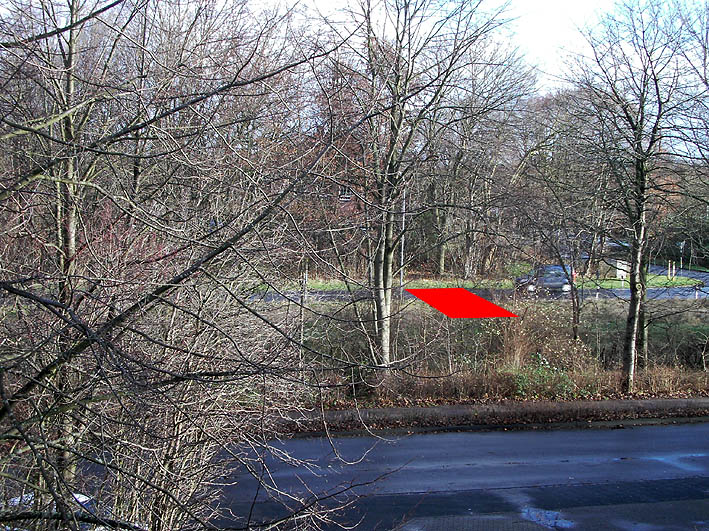 Der ehemalige Bunkerstandort befindet sich circa 40 Meter in Luftlinie östlich der "Bunker-WHV-Redaktion". Die obere Aufnahme entstand aus dem Küchenfenster der "Redaktion" und zeigt die Position des ehemaligen Standortes.