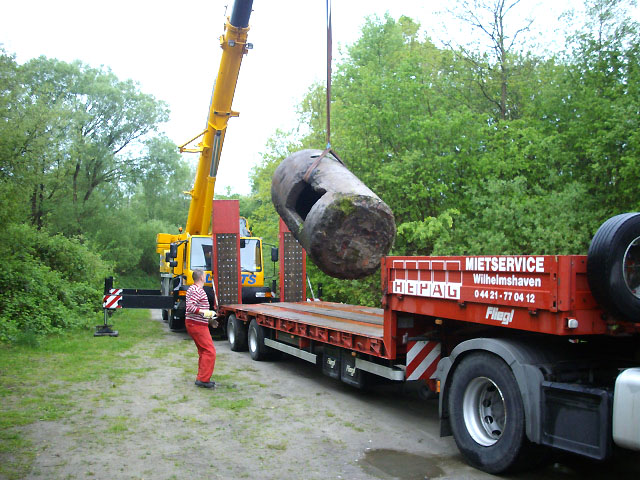 ...der Weg der Splitterschutzzelle vom Fundstandort im Freibad "Klein Wangerooge" durch die Stadt Wilhelmshaven bis hin zum neuen Standort am Minsener Oog 1A...