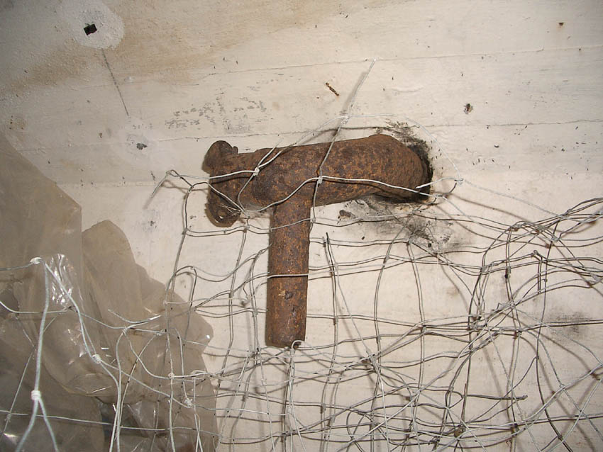 Reste der Lüftung zu einem der Lüftungstürme. Hier muss eine Handfilterpumpe befestigt gewesen sein.