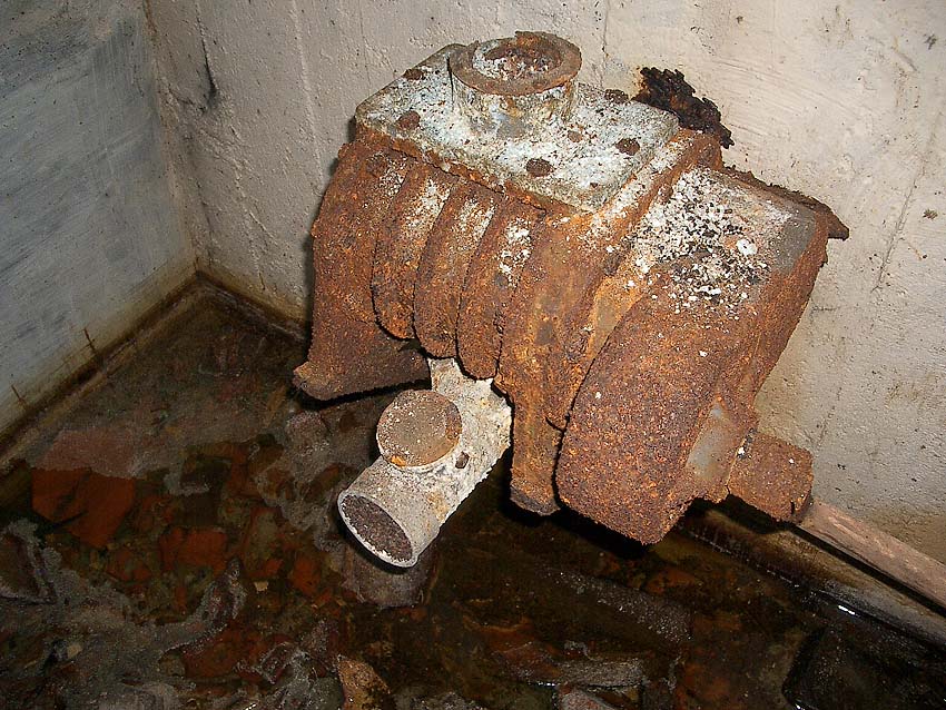 Die Luftfilterungsanlage ist erstaunlich komplett erhalten. Auch steht insgesamt weniger Wasser im Bunker als vermutet. Dies hängt damit zusammen, dass die Anlage weniger weit unter Erdgleiche liegt als zunächst vermutet...