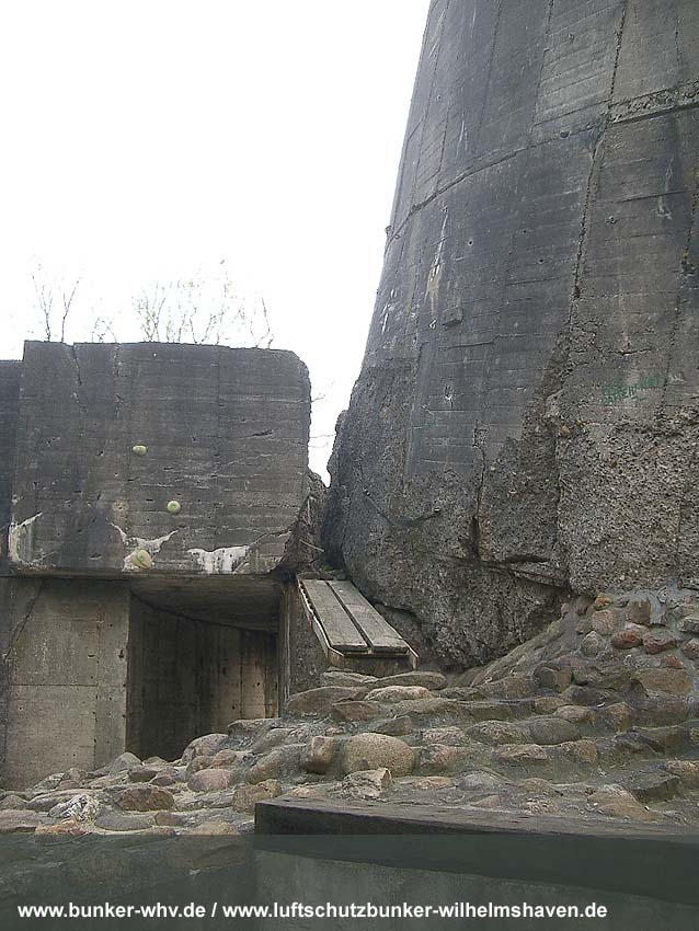 Die beiden Zugänge zum seitlich an den Bunker angesetzten Lüftungsturm...