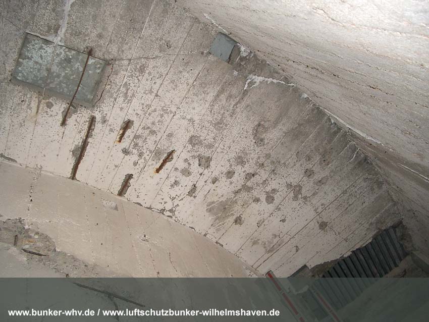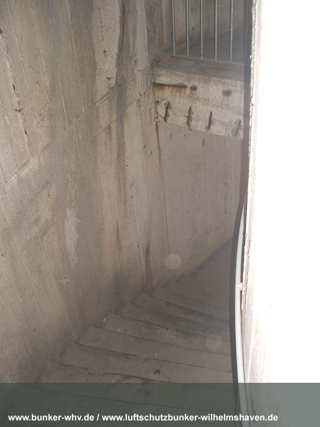 Die Lüftungsschächte des obersten Geschosses von innen in einem kleinen Druckprelltunnel oberhalb des Treppenhausganges. An den Enden des Lüftungsschachtbereiches waren Drucktüren mit Schleusen angebracht, da die Schächte selbst nicht über Schutzklappen verfügten. Dies erklärt, warum die Schächte bei dieser Bauserie nur im Halbrund angefertigt worden sind und nicht vollkommen die ganze Ebene umlaufend. Am Ende des Halbrundes sind jeweils die Schutztüren gewesen, welche im Falle eines Angriffes geschlossen wurden...