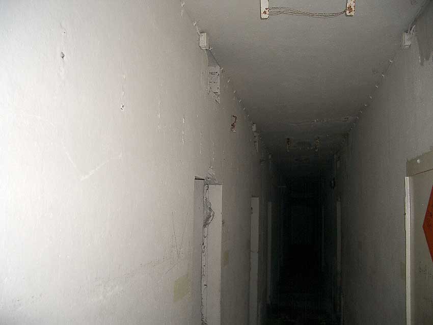Die folgenden Aufnahmen stammen allesamt aus dem Erdgeschoss. Das Obergeschoss ist aufgrund extremer Feuchtigkeitseinwirkung in Folge starker Undichtigkeiten der Bunkerdecke und stehendem Wasser momentan nur mit Mühe begehbar.