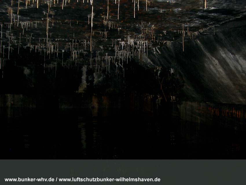 Warum wurde gerade hier auf der Wiesbadenbrücke ein Tiefbunker errichtet? Nicht nur, dass Wilhelmshaven ohnehin einen hohen Grundwasserspiegel hat. Gerade hier drückt das Wasser des Hafens von zwei, ja sogar wohl drei bzw. vier Seiten besonders an die Bunkerwände. Der Bau kann nur erklärbar sein durch zwei Punkte. 1. Tarnung, da im Krieg ohnehin nur spärliche oberirdische Bebauung auf der Wiesbadenbrücke existierte. 2. Freies Schussfeld für mittlere Flak, die nach Hinweisen zu Zeit des Bunkerbaues hier stationiert war, später dann an einen anderen Standort verbracht wurde.