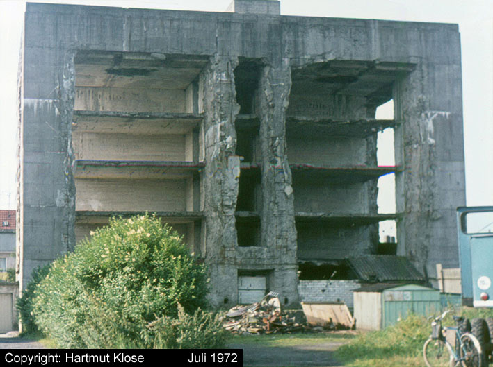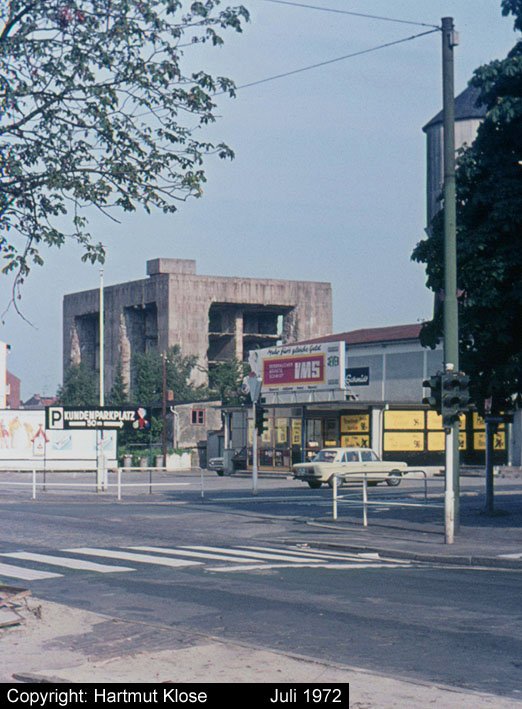 Aufnahme des Hochbunkers hinter der Mozartstraße. Auch dieser Bunker ist vorhanden. Aufnahme aus dem Jahre 1972.