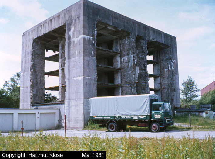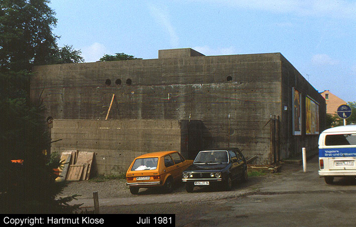 Aufnahme des Hochbunkers Deichstrich. Der Bunker ist noch immer vorhanden. Aufnahme aus dem Jahre 1981.