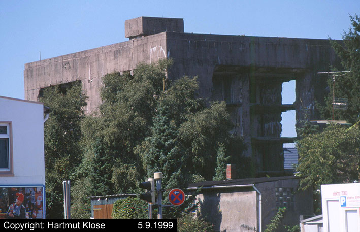 Aufnahmen des Hochbunkers Störtebekerstraße / Sedan. Der Bunker wurde nach dem Krieg entfestigt und ist noch heute in diesem Zustand vorhanden. Der nahe Wasserturm wurde abgerissen. Aufnahmen aus den Jahren 1956, 1959, 1960, 1962, 1972, 1981 und 1999.