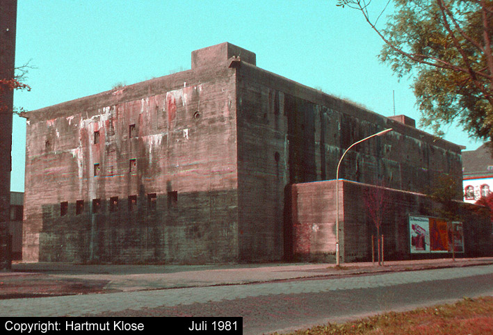 Aufnahme des Hochbunkers Einigungsstraße. Der Bunker ist noch immer vorhanden. Aufnahme aus dem Jahre 1972.