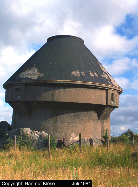 Die links ersichtliche Schutzzelle ist eine Metallsplitterschutzzelle der Bauart "Mannesmann". Diese Zelle war mit ziemlicher Sicherheit ursprünglich oben auf der Kuppel eingebettet in den Beobachtungsstand des LS-Turmes (siehe Aufnahmen des intakten Turmes).