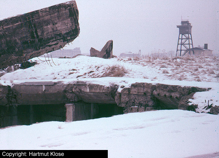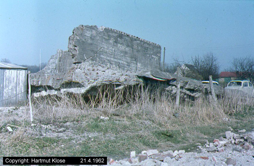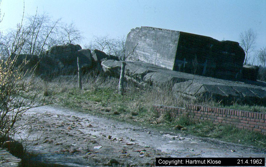Aufnahmen der gesprengten Reste der Flakstellung "Tirpitzschleuse". In den Nachkriegsjahren wurden die Reste gänzlich beseitigt. Heute befindet sich dort ein Wendeplatz. Aufnahmen aus den 1950er Jahren und den frühen 1960er Jahren.