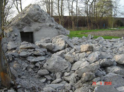 Aufnahmen des Schleusentorbunkers 4 der ehemaligen 3. Einfahrt während des Teilabrisses. Heute befindet sich genau dort die erweiterte Straßenführung. Aufnahmen aus dem Jahre 1999.