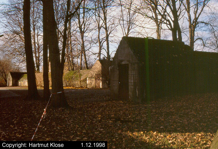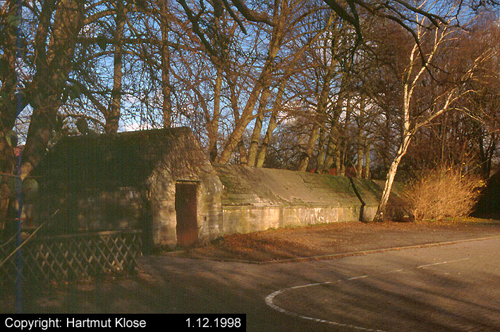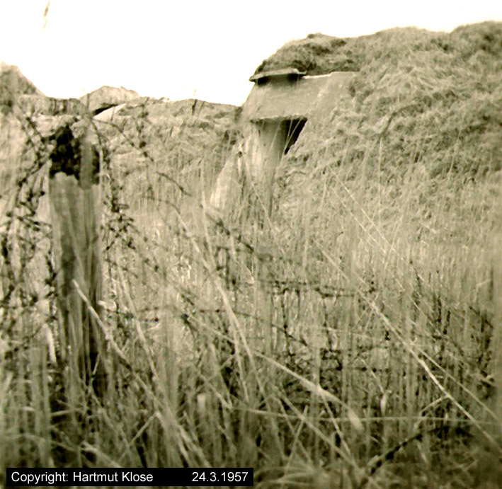 Aufnahme eines Kleinbunkers. Dieser Bunkerunterstand unweit nördlich der Flakstellung "Tirpitzschleuse" wird den Munitionsbunker der Anlage dargestellt haben. Auf jeden Fall wird das Objekt zur Stellung gehört haben. Genau wie die Stellung wurde der Bunker in den Nachkriegsjahren entfernt. Aufnahme aus dem Jahre 1957.