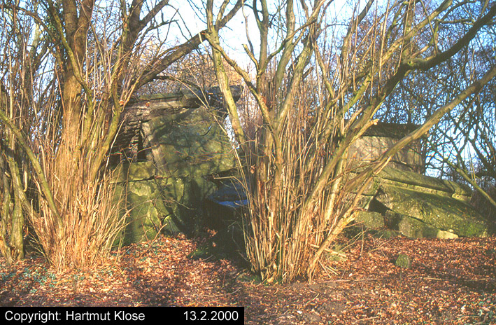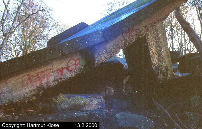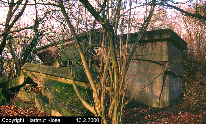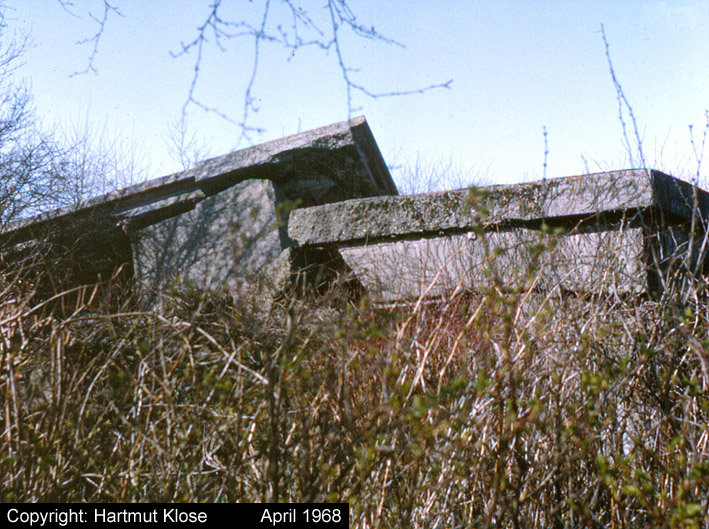 Aufnahmen des Kleinbunkers am Lönsweg. Dieser Bunker war für das Rundsuchgerät "Jagdschloß" als Sockel geplant. Das Gerät wurde allerdings nie installiert. Im April 2003 wurde der nach dem Krieg gesprengte Bunker aus (fragwürdigen) Sicherheitsgründen zerkleinert und mit Erdreich überdeckt. Aufnahmen aus den Jahren 1968 und 2000.