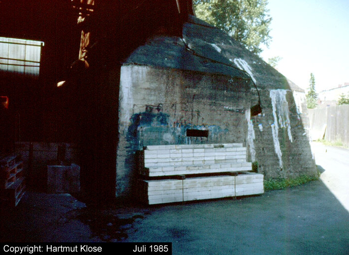 Aufnahmen des Kleinbunkers auf dem ehemaligen HBV-Gelände (ursprünglich Marine-Materiallager) am Handelshafen. Der Bunker ist im Oktober / November 2015 abgerissen worden. Aufnahmen aus dem Jahre 1985.
