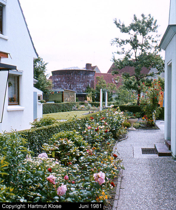 Aufnahme eines weiteren verklinkerten kleinen Rundturmes an der Fritz-Frerichs-Straße. Der Bunker ist ebenfalls noch vorhanden. Aufnahme aus dem Jahre 1981.