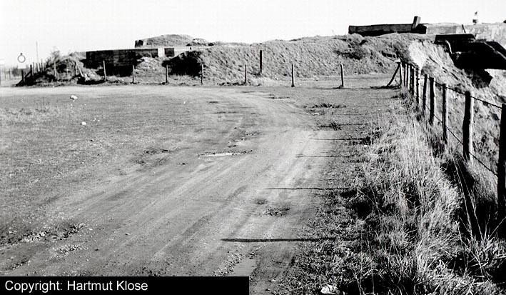 Aufnahme des Deckungsgrabens ("Zickzackbunker") in Middelsfähr. Der Graben ist noch immer vorhanden. Lediglich die Splitterschutzwände der Eingänge wurden entfernt. Aufnahme aus dem Jahre 1972.