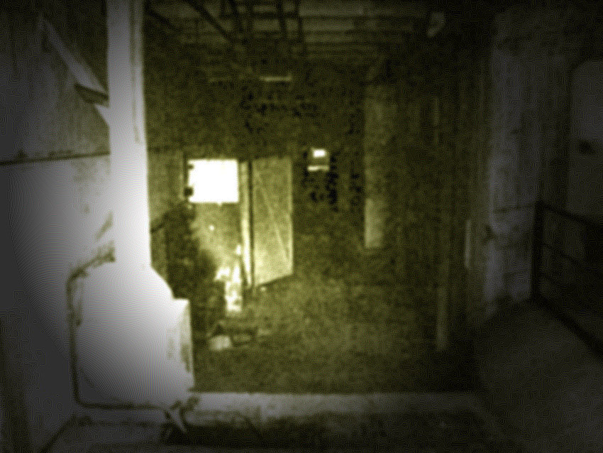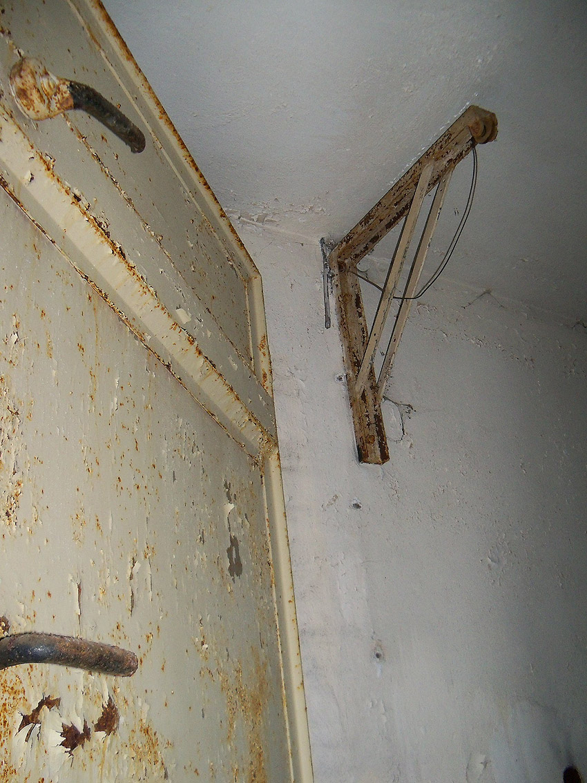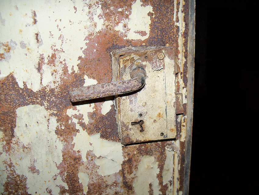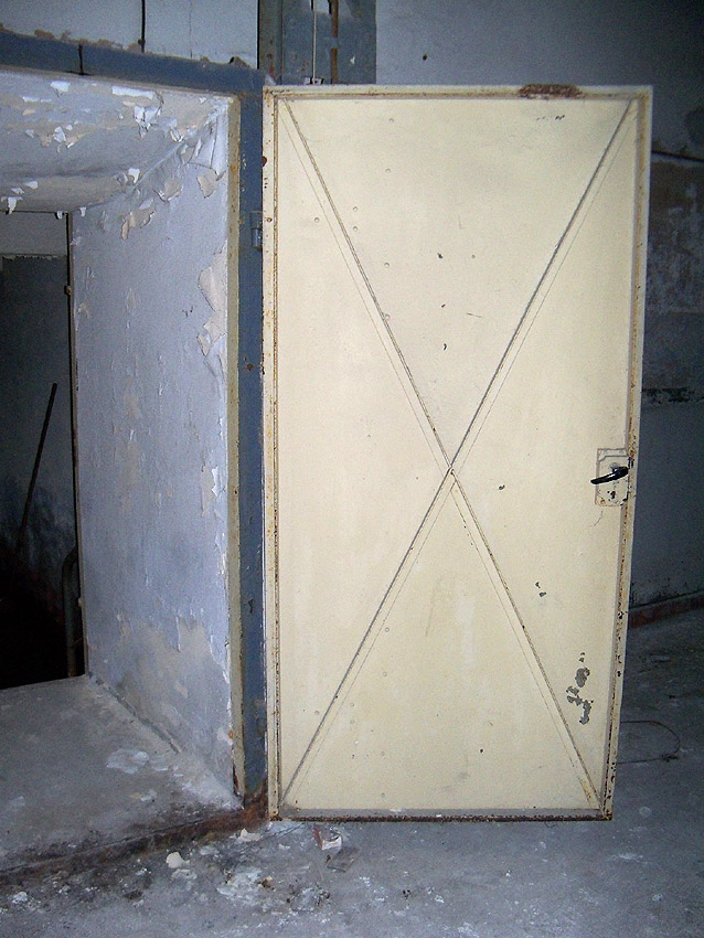 Blick durch die oben erkennbare rückwärtige Tür in den dortigen nach links verlaufenden Vorkeller und den ehemaligen LS-Raum selbst. Dort im Hintergrund links ist wiederum der oben abgebildete Hauptzugang erkennbar: