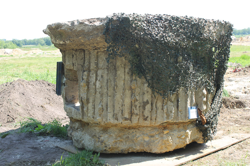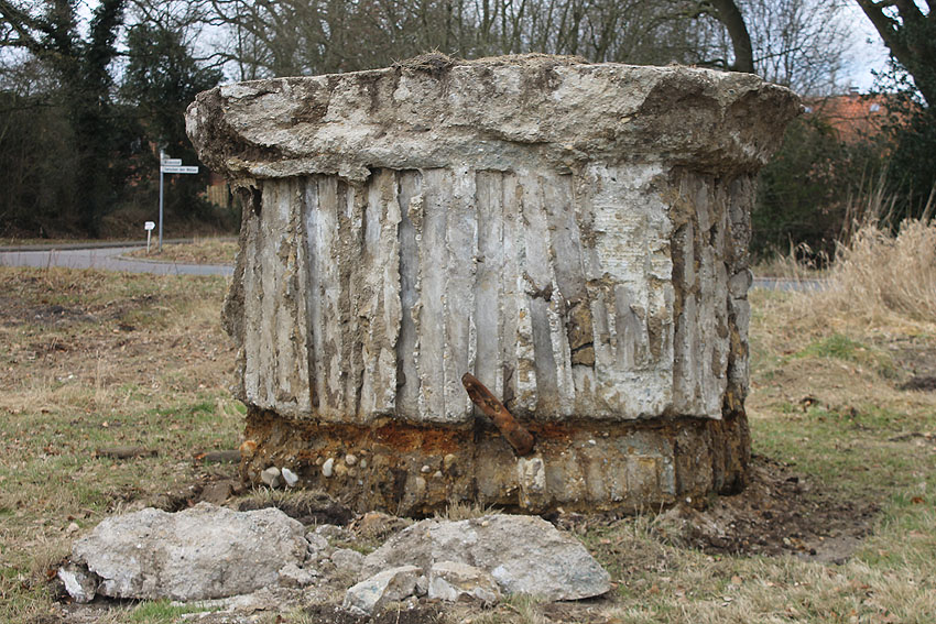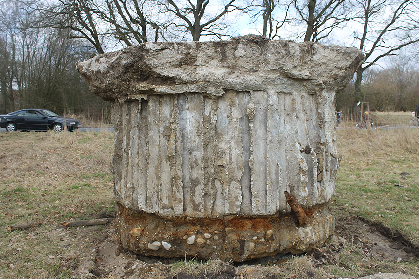 Nach einem halben Jahr Vorbereitung und Koordinierung sagen wir heute: "Ende gut, alles gut!" Der Tobrukstand als interessantes, martialisches Zeugnis des geplanten "Friesenwalls", in einem Friedeburger Erdloch für einen MG-Schützen Ende 1944 gegossen, wurde heute intakt nach Wilhelmshaven verbracht. Er steht nun als erster von fünf Kleinbunkern auf dem IEHF-Gelände am Kanalweg. Wir danken der Firma Hepag für den reibungslosen Transport, der Interessengemeinschaft zur Erhaltung historischer Fahrzeuge für den Stellplatz, der Firma JK-Fahrzeugtechnik für die Holzspende, dem WZ-Fotografen für die Ausdauer (wir hatten uns um ca. 30 min. mit der Ankunft verschätzt) und Herrn Wiard Remmers, der alles damals und bis jetzt durch seine Hilfe erst ins Rollen brachte.