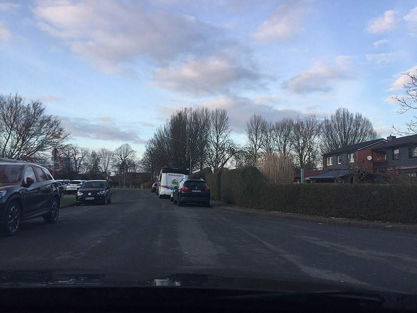 Hier war die östliche Lagerbegrenzung / die LS-Anlage befand sich nahe links der Straße (Emil-Lueken-Straße) im Bereich der heutigen Wohnhäuser:
