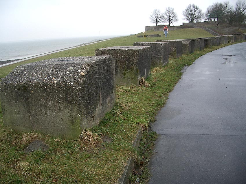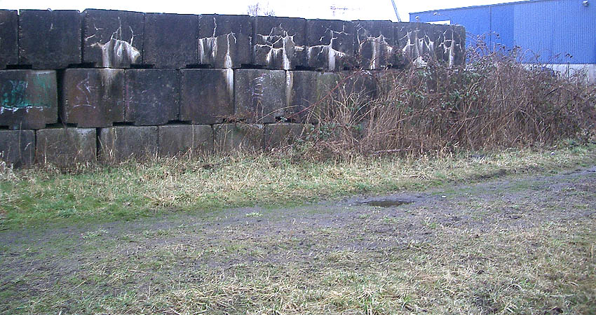 Diese Betonblöcke, welche auf dem Gebiet des Rüstringer Berges (ehemalige schwere Flakstellung Raederschleuse Nord) und gestapelt auf dem Gebiet der ehemals geplanten Nordwerft am Lüneburgkai liegen (am Lüneburgkai inzwischen entfernt / Nachtrag 2022: Auch am Rüstringer Berg entfernt / dies geschah am Rüstringer Berg im Sommer 2022), werden sehr wahrscheinlich derartige (nicht abgerundete) Schutzblöcke gewesen sein. Diese Blöcke werden jedoch nicht vor den Fenstern normaler Keller von Mehrparteienwohnhäusern positioniert worden sein. Nach Hinweisen sollen die Blöcke dieser extrem massigen Dimension im militärischen Sektor im Luftschutzbereich von Kasernen und Werftbetrieben der Stadt Wilhelmshaven eingesetzt worden sein. Es existieren aber auch Hinweise, dass die hier abgebildeten Blöcke zum Bau von Kaianlagen genutzt worden sein sollen, oder dass sie die Verankerungsfundamente von Bojen im Fahrwasser darstellen. Sollte sich einer dieser Hinweise als richtig herausstellen, wird hier natürlich sofort korrigiert werden. Wer hat Infos dazu? Die Blöcke für zivile LS-Keller waren kleiner dimensioniert. Zwei Fotobeispiele der inzwischen vollkommen aus dem Stadtbild verschwundenen, zu hunderten produzierten Kleinblöcke: