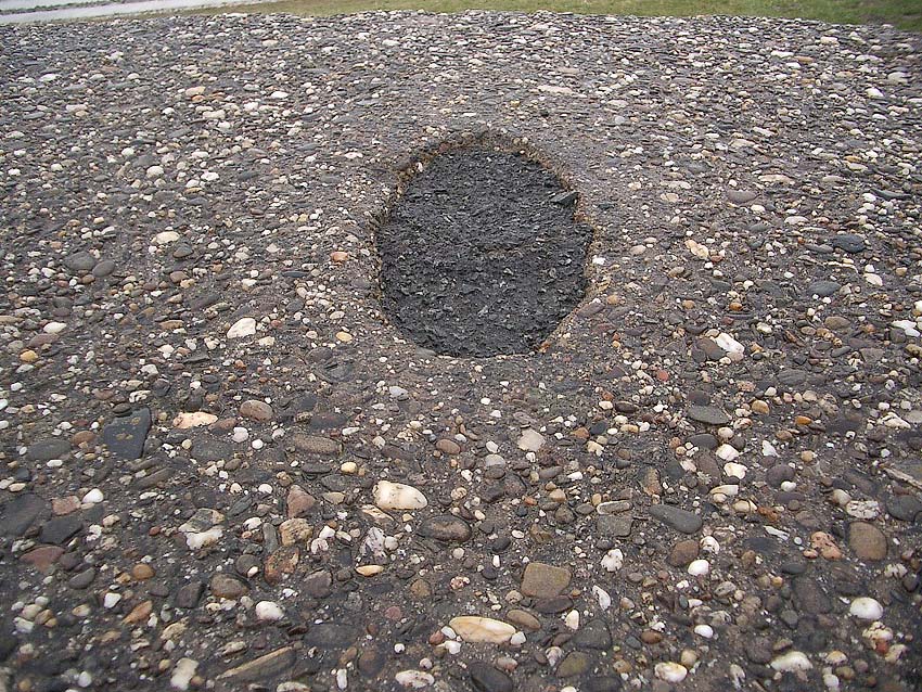 Transporthaken an den Blöcken (links Rüstringer Berg, aus Verletzungsschutzgründen alle mit Teer überdeckt)