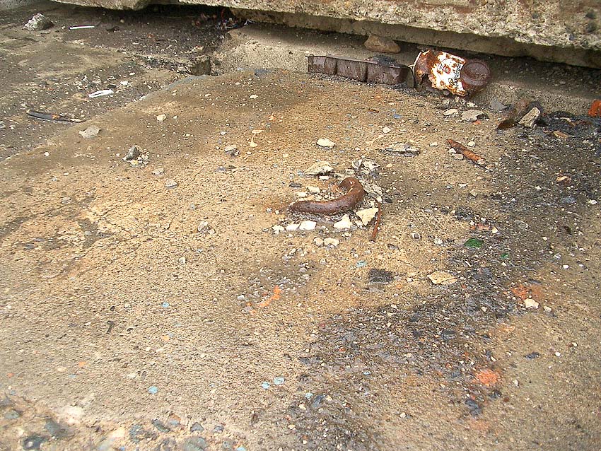 Vor vielen LS-Kellerfenstern im Stadtgebiet wurden Betonblöcke als Detonationsdruckschutz abgelagert. Der Zwischenraum zwischen Block und Außenwand wurde mit Putz abgedichtet.