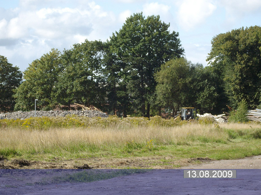 Banter Kaserne: Der Schutt wurde weiter sortiert und der Schuttberg ist bis auf 8 Meter Höhe gewachsen. Die Fundamente der Hauptgebäude wurden entfernt. Hier Wie nun bekannt wurde, sollen das Stellwerk und das Trafogebäude an der Emsstraße am Montag, 21.09.09, abgerissen werden. Zumindest das Trafohaus war der Banter Kaserne als Stromversorgungsverteiler zugehörig. Beide Gebäude befinden sich extern des Kasernengeländes an der Emsstraße. Letzte Impressionen: Hier Wir berichten Montag zeitnah.
