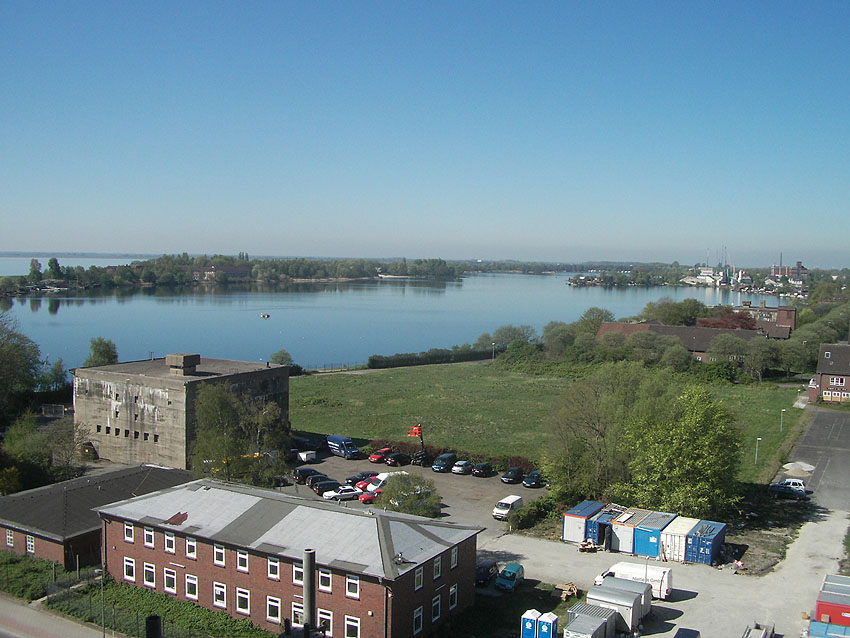 Am 21.04.09 hatten wir bei gutem und klarem Wetter die Möglichkeit, vom neuen Columbiahotel in Wilhelmshaven Fotos in Vogelperspektive hinüber zu den beiden Truppenmannschaftsbunkern 750 der Banter Kaserne aufzunehmen. Es entstanden einige eindrucksvolle Aufnahmen vom Hafen, den Bunkern und der Kaserne, die bald abgerissen wird. Auch wurden weitere Fotos direkt am T 750 1 "Banter Ruine" und gegenüber vom Südufer des Banter Sees angefertigt. Hier Unser Dank an das Columbiahotel Wilhelmshaven für die freundliche Begehungsermöglichung! |