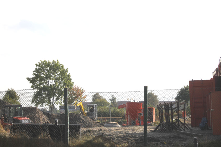 GSVBw 29 Accum: Der Rohbau des neuen Erweiterungsbaues vom nahen Pflegeheim ist bereits fast vollendet. Der Kanalschacht an der südlichen Seitenwand des Bunkers wurde entfernt. Hier