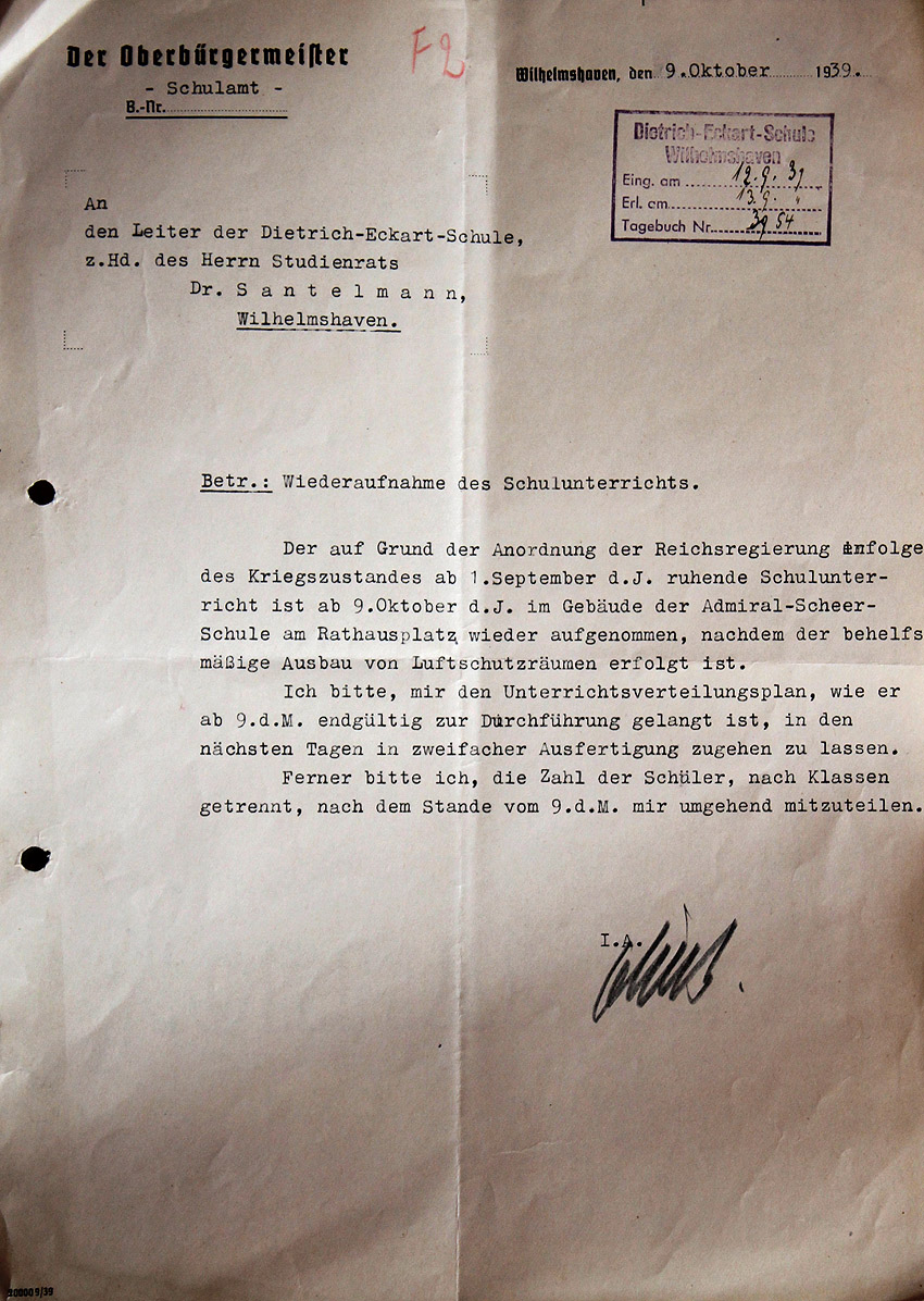 Tiefbunker Banter Markt: Eventuell war hier zunächst ein Luftschutzturm geplant. Die Ausschachtung wurde bei einem Bombenangriff im Januar 1941 beschädigt. Wurde deshalb dann der Tiefbunker realisiert? Es kann sich im Schriftstück natürlich auch um einen Fehler in der Beschreibung des dort zu der Zeit begonnenen Bunkerbaues handeln. Hier