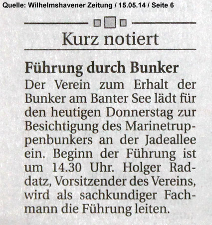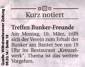 Verein zum Erhalt der Bunker am Banter See in Wilhelmshaven e.V.: Heute in der Wilhelmshavener Zeitung: